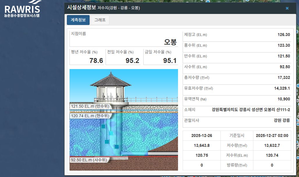 가을에 화제였던 강릉 오봉저수지 요즘 수위 본문