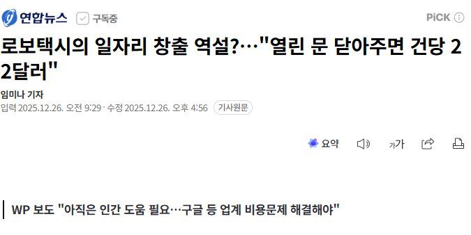 미국, 자율주행 로보택시가 택시기사 일자리를 먹지만, 한편 호출받아 로봇택시 문제를 해결해주는 아르바이트 일자리가 생겼다는 기사 본문