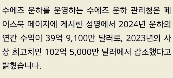 수에즈 운하를 통과하는 해상 물류가 정상화되면, 연간 100억 달러쯤 되는 정부수입 원천이다가 지금 격감한 수에즈 운하 통과료 손해가 개선될 것.