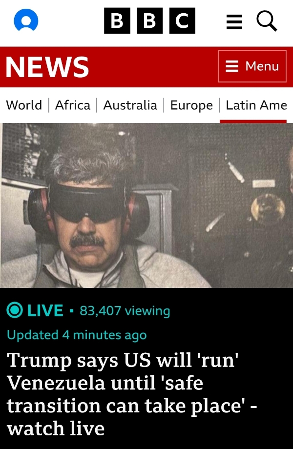 미국, 베네수엘라 침공. 니콜라스 마두로 베네수엘라 대통령을 포로로. 본문