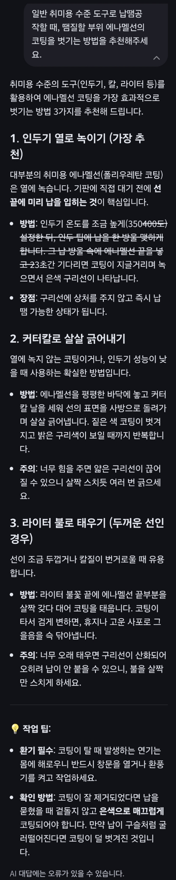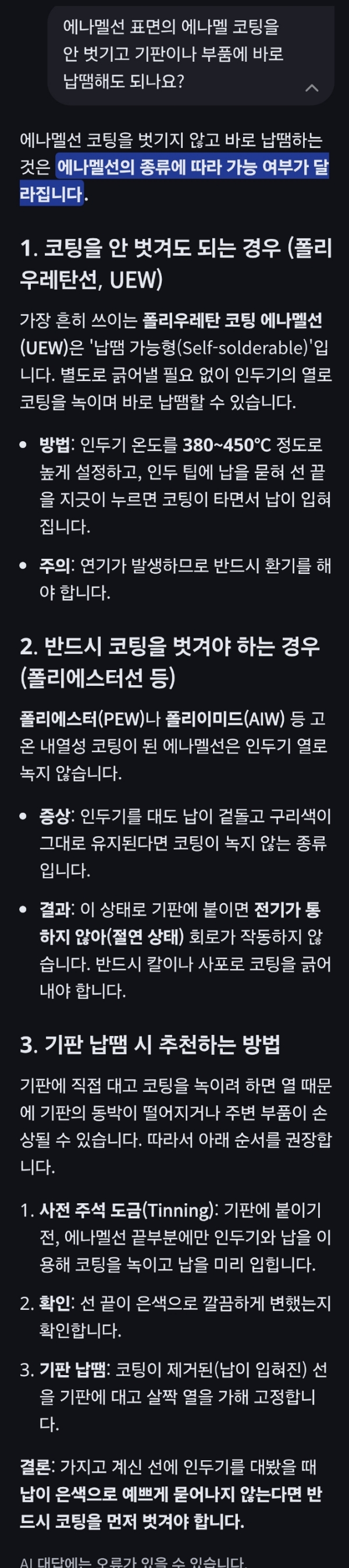 납땜 전에 에너멜선 코팅 제거 (ai챗봇) 본문
