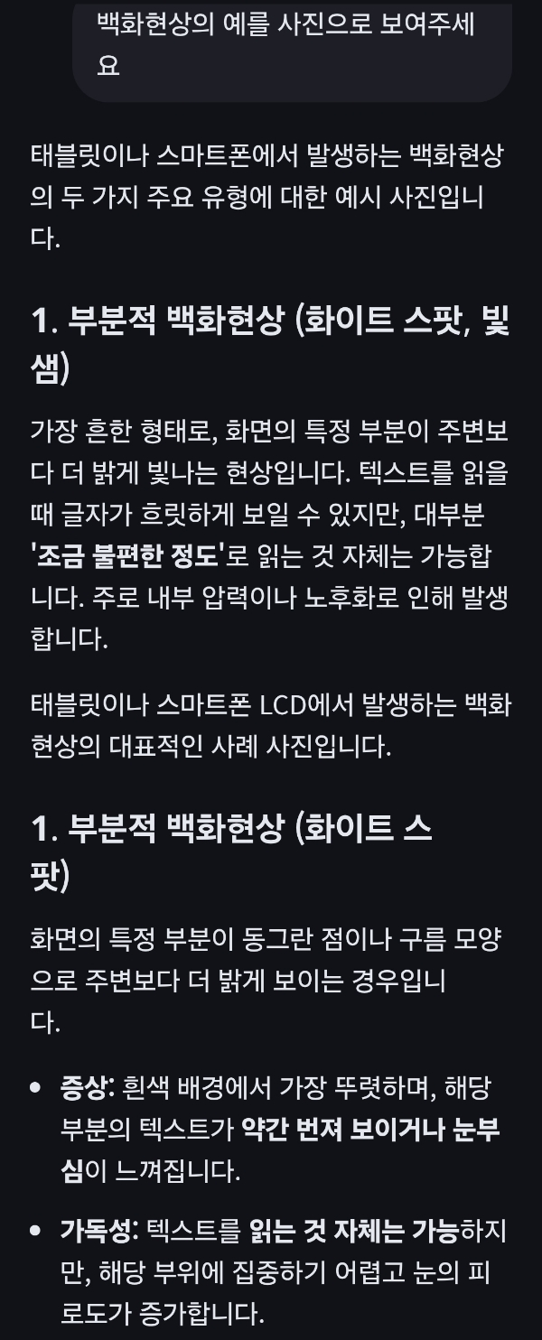 태블릿이나 스마트폰 LCD화면의 백화현상(White Spot) : ai챗봇 문답 본문