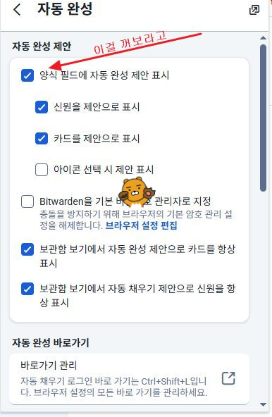 크롬 브라우저의 비밀번호 관리자가 기본 관리자로 지정돼있을 때가 가장 크다는 모양. 이걸 바꿀 생각이 없다면, 비트와든의 자동 팝업 기능을 꺼주라고 한다. 이렇게.