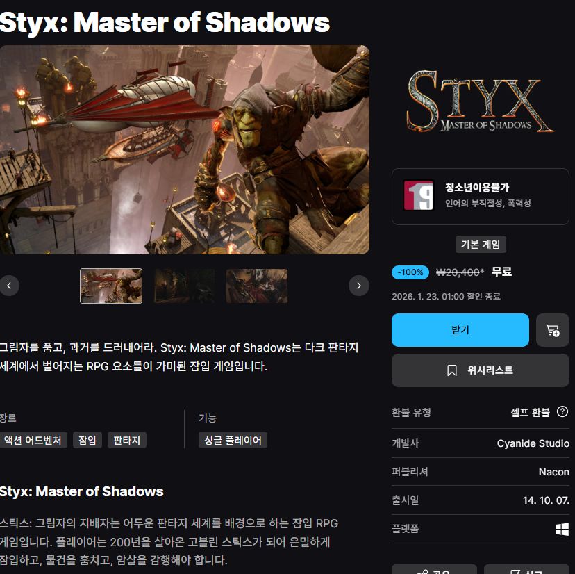 | (에픽게임즈) Styx: Shards of Darkness - Deluxe Edition (0) | 2026.01.16 |