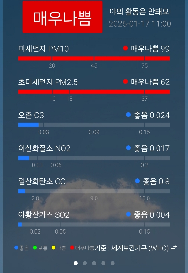 세계보건기구 기준 아주 나쁨.