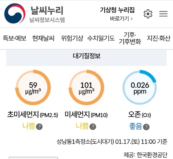 환경부기준 나쁨.