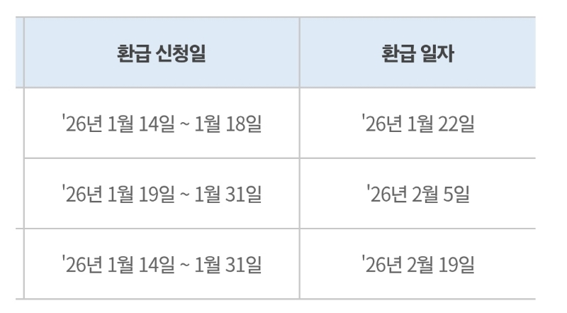 · 환급 신청(고객님께서 납부하신 위약금에 대한 환급): 2026년 1월 14일(수) 09시 ~ 2026년 1월 31일(토) 22시