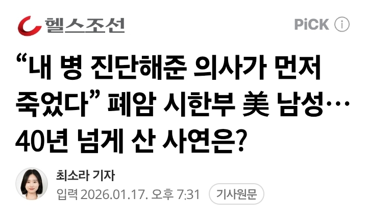 “내 병 진단해준 의사가 먼저 죽었다” 폐암 시한부 美 남성… 40년 넘게 산 사연은?
