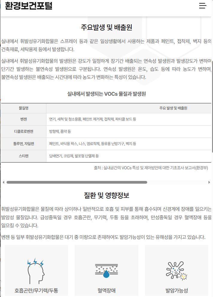 #휘발성유기화합물이란? #주요발생 및 배출원 #질환 및 영향정보 #주요 휘발성유기화합물질