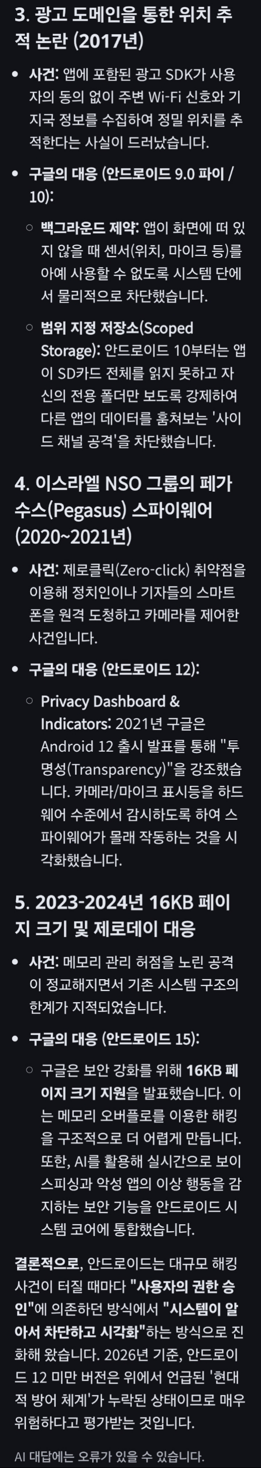 개인정보보호 취약점 개선이나 운영체제 버그 고치기면에서, 이전 버전보다 크게 좋아진 안드로이드 버전들고 중요한 사건들을 롤리팝부터 최근까지