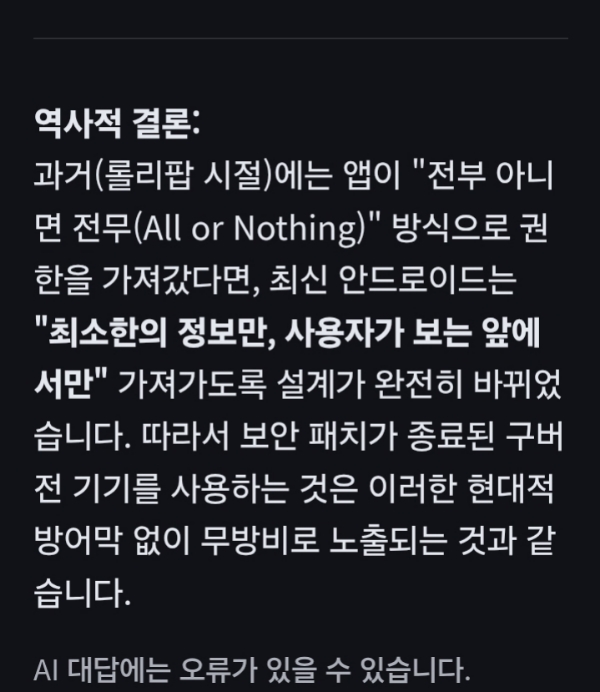 ★ 스마트폰 구버전 Android OS의 보안 이슈 정리: ai챗봇 본문