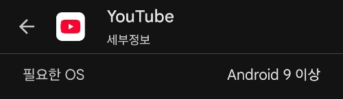 일반 유튜브 앱은 안드로이드OS 9 이상을 요구하며, 그나마도 9에서는 일부 기능이 지원되지 않기 시작했다고 합니다. (유튜브 뮤직도 8 이상입니다)
