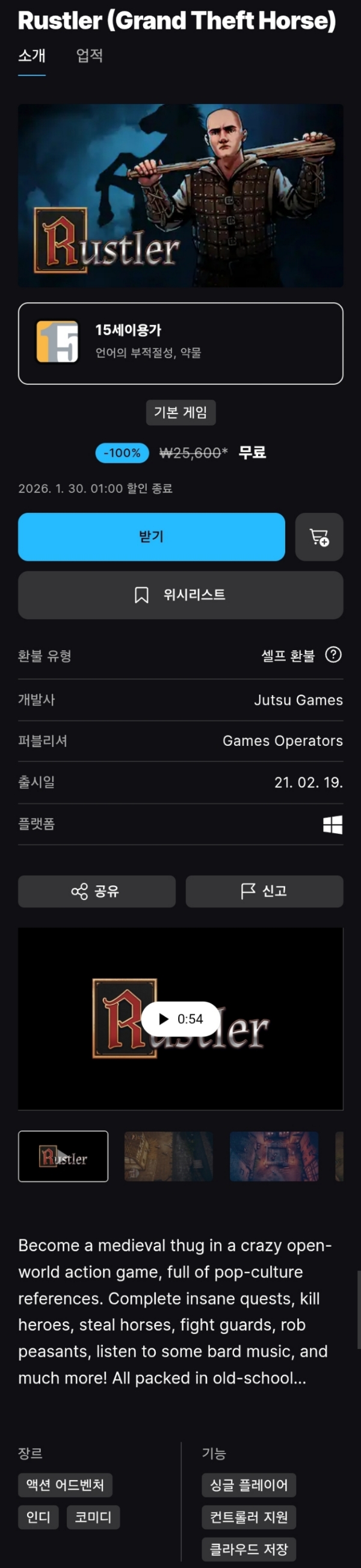 (에픽게임즈 무료게임) Rustler (Grand Theft Horse) 본문