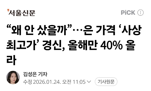 2026.1.23-24. 메모리가격만큼 오른 금값, 금값에 버금가게 오른 은값 본문