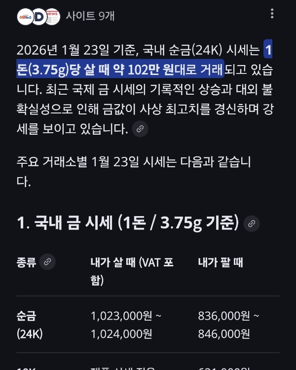국내 금시세는 한 돈에 100만 원