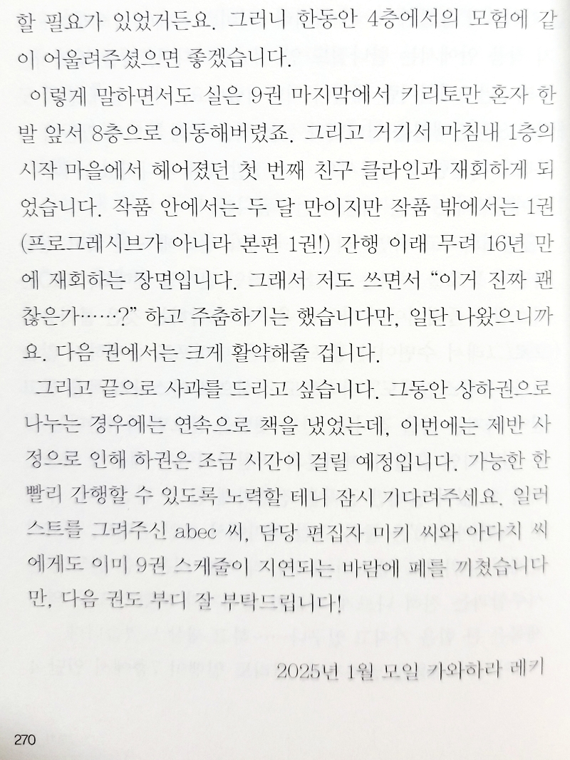 작가 후기까지 해서 270쪽이라니.. 얇네요.. 작가, 일해라!