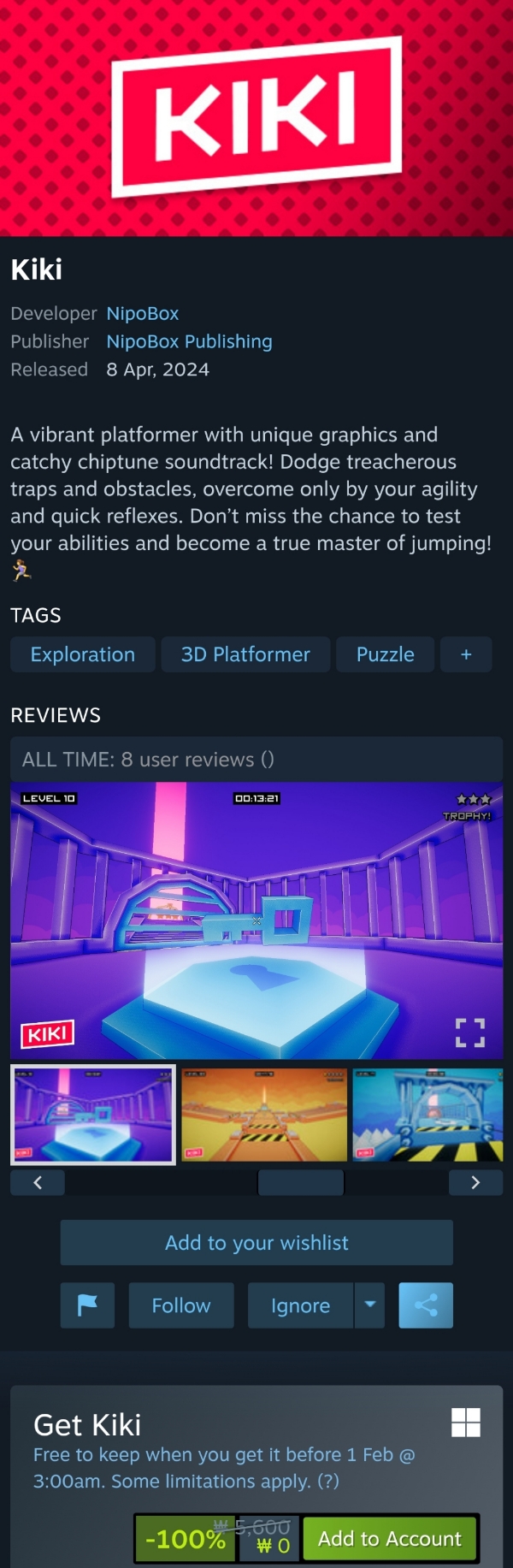 Save 100% on Kiki on Steam