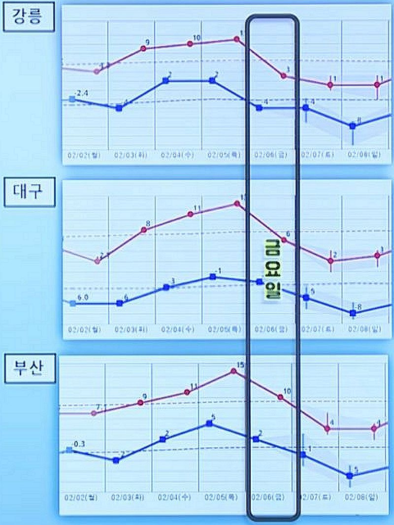 | 2026.2.6.금.~ 2.15.일. 일기예보: 주말까지 추웠다가 풀리는 날씨 (0) | 2026.02.06 |