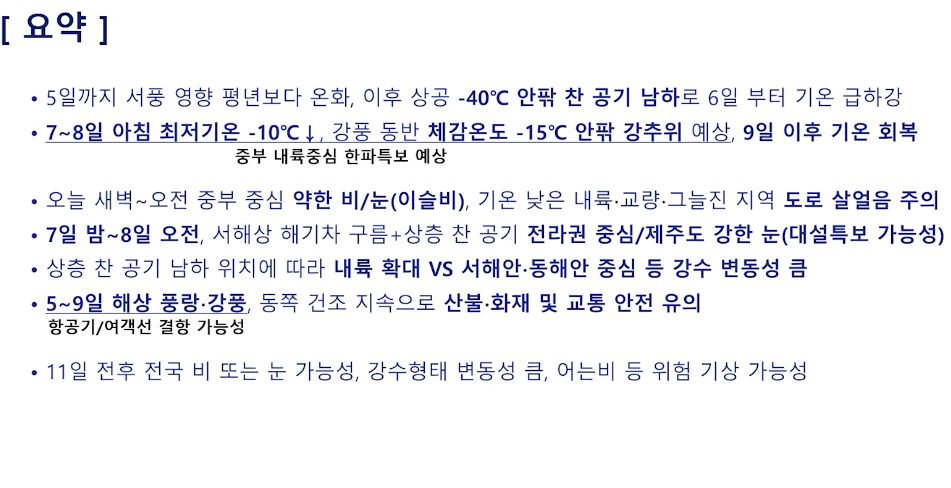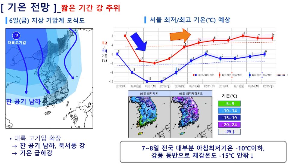 주말동안 짧고 강한 추위, 서해안은 많은 눈 주의하세요! (2026년 2월 5일 기상청 예보브리핑)