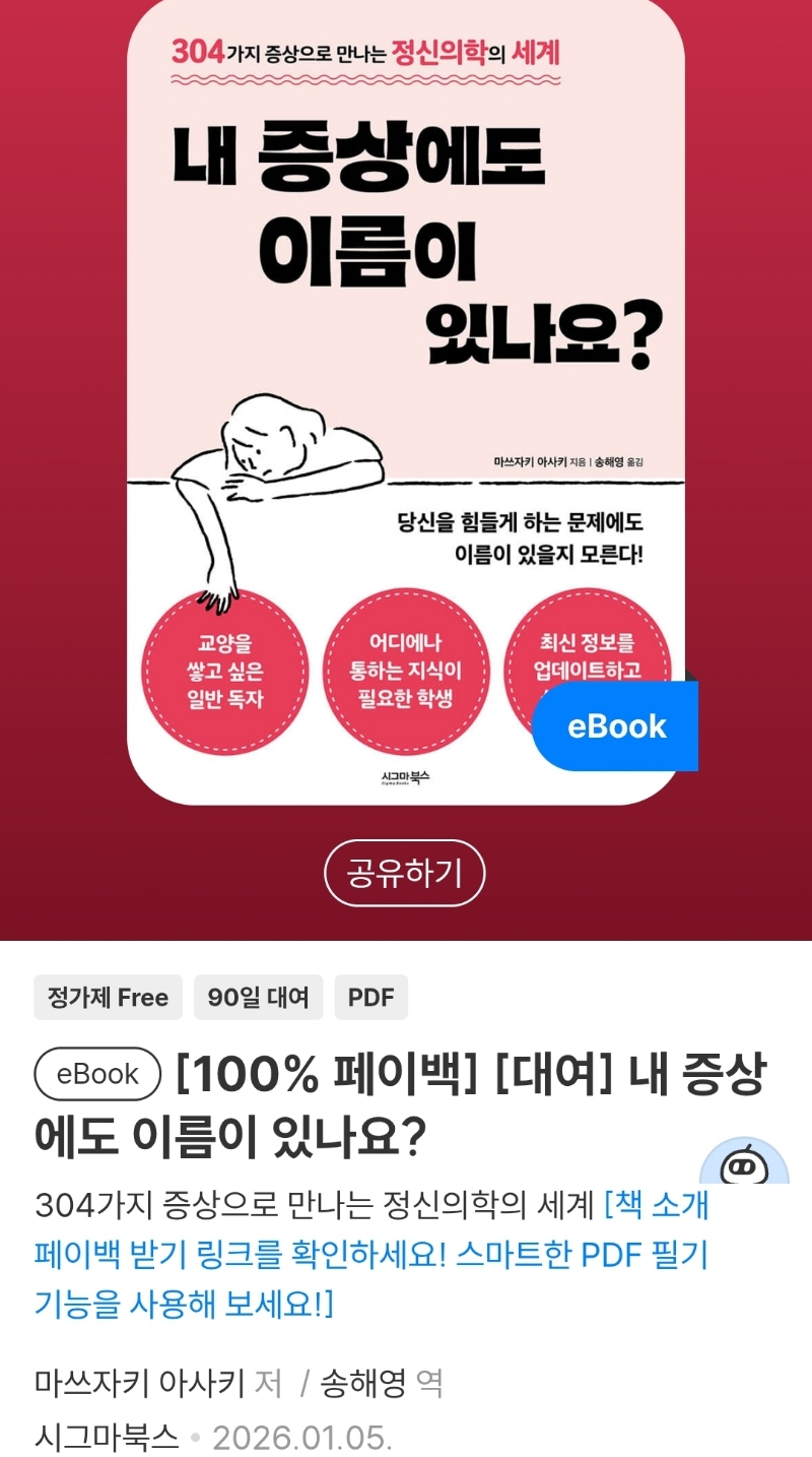 [전자책] [100% 페이백] [대여] 내 증상에도 이름이 있나요? | 마쓰자키 아사키 | 시그마북스 - 예스2