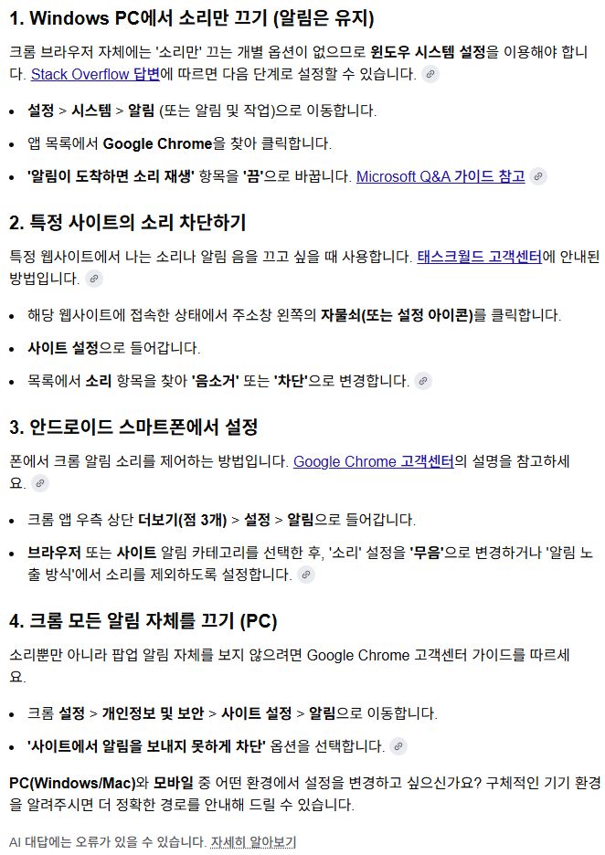 다운로드되면 알림음 같은 걸 끄려면 윈도우 시스템에서 크롬 앱의 "알림이 도착하면 소리 재생" 끄기.