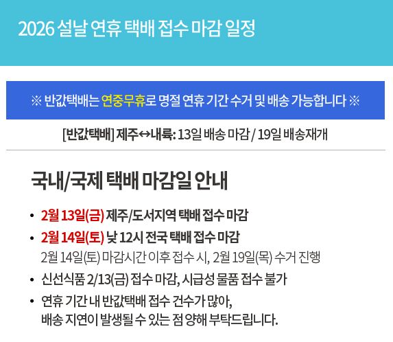 2/12일 제주 및 도서발송마감, 반품집화마감,