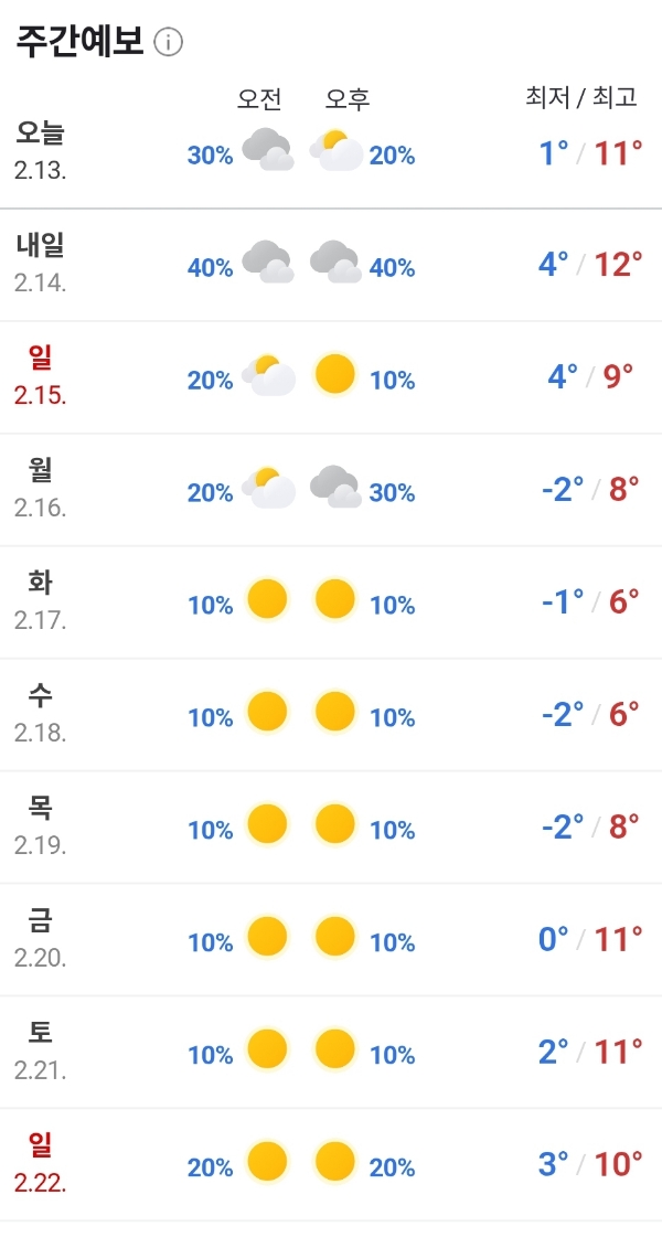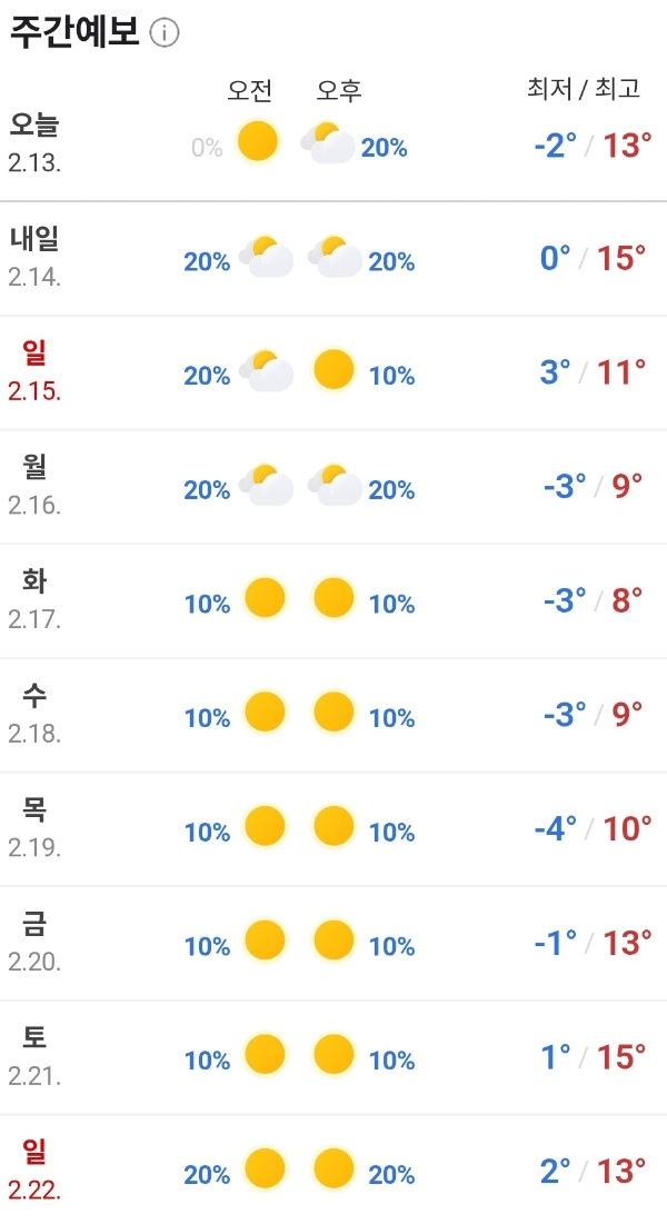 2026.2.13.금.~2.22.일. 온화한 설날씨 본문