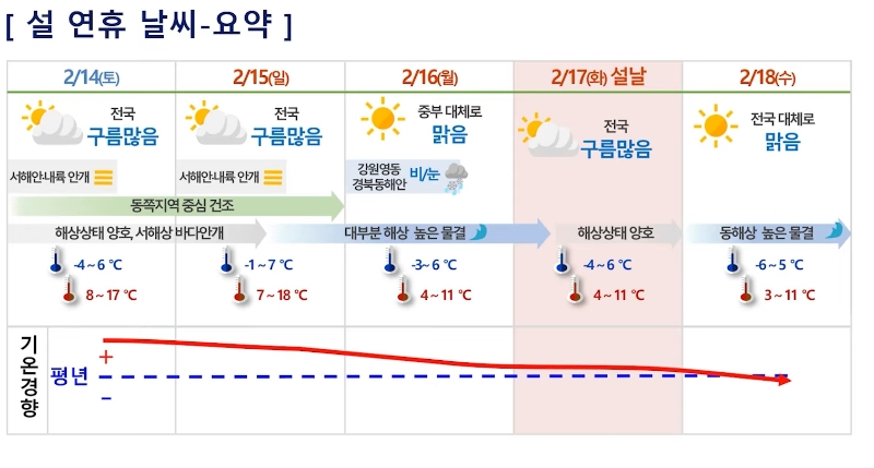 설 연휴 날씨 알려드릴게요! 새해 복 많이 받으세요! (2026년 2월 12일 기상청 예보브리핑)