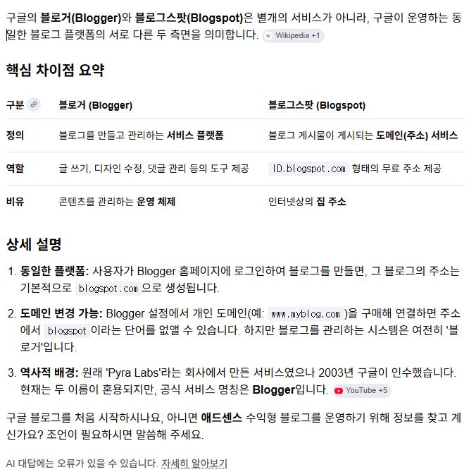 AI: 구글 blogspot과 blogger 사이트의 차이