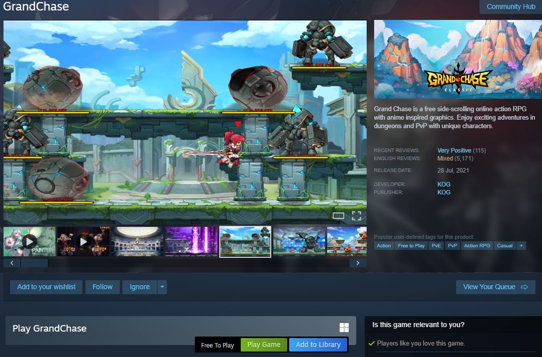 Grand Chase is a free side-scrolling online action RPG with anime inspired graphics. Enjoy exciting adventures in dungeons and PvP with unique characters.