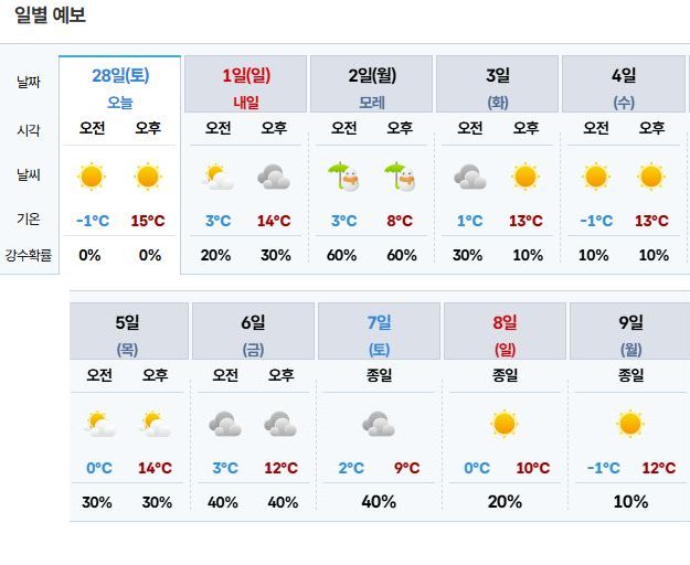 2026.2.28.토.~3.9.월.날씨: 0~10도 내외인 날씨 본문