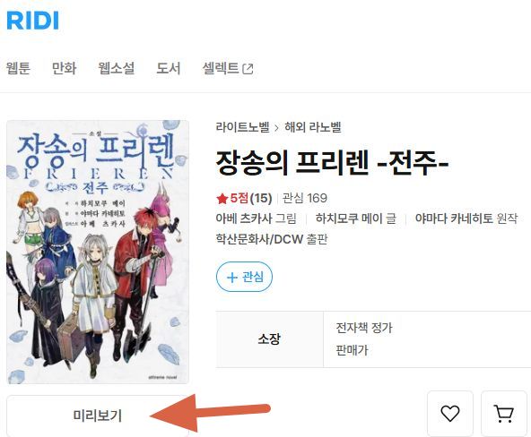 이 책의 종이책은 품절입니다. 아 아쉽.. 첫 화의 앞부분을 맛보기할 수 있습니다. 페른과 하이터.