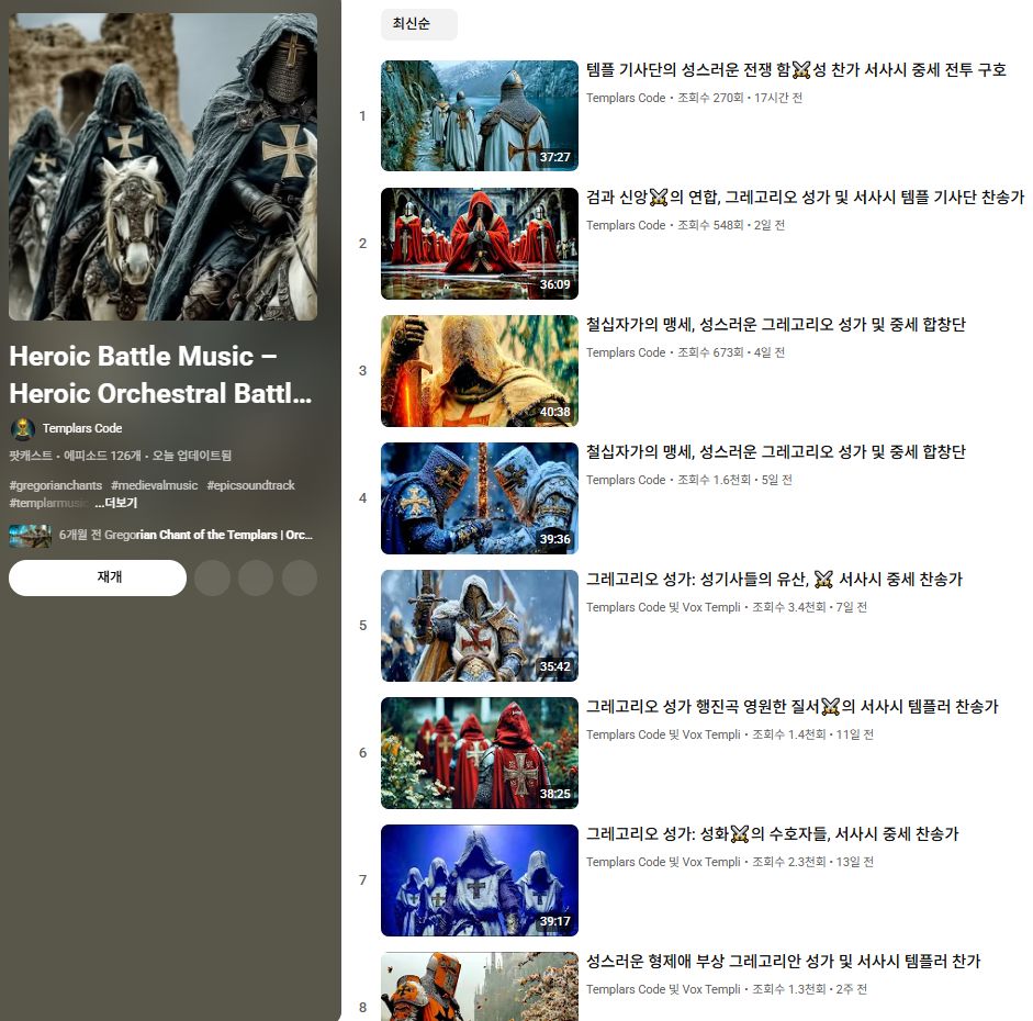그레고리오 성가(유튜브) 등 중세 기독교 노래분위기 본문