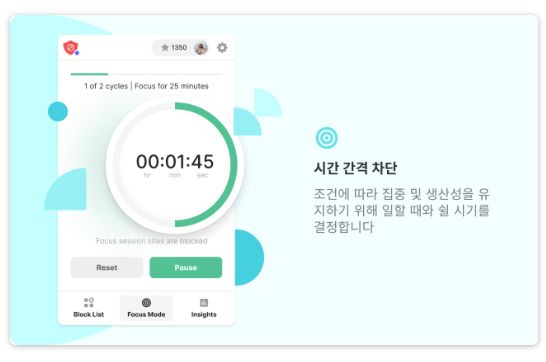 초점 유지 및 생산성 향상: 사용자 정의 블록 목록, 스케줄된 사이트 차단, 비밀번호 보호.