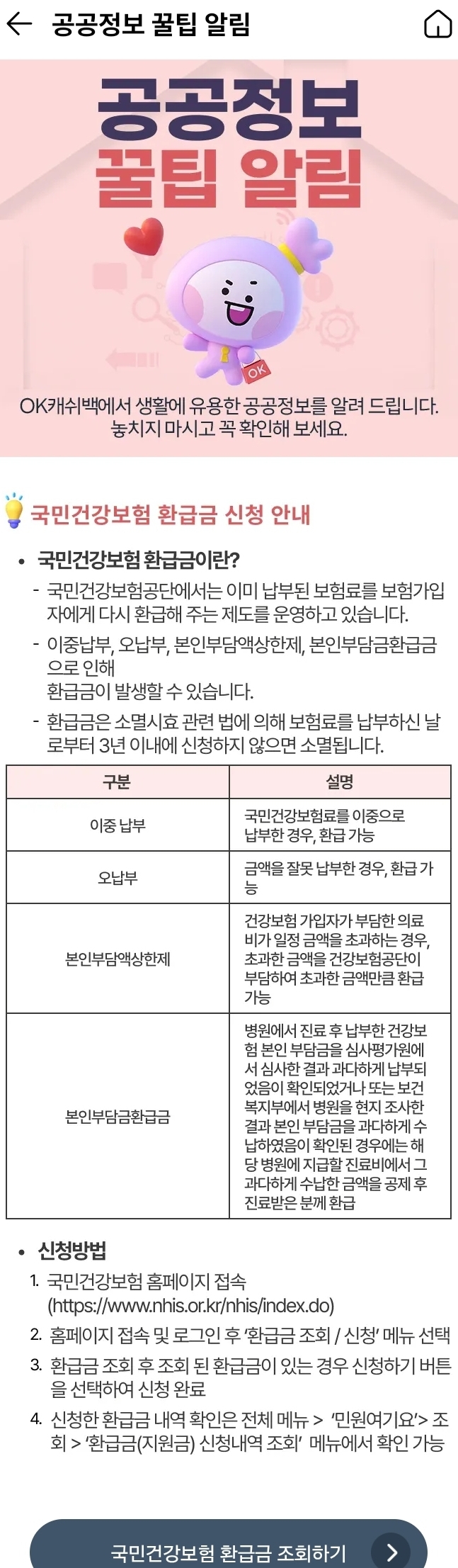 국민건강보험 본인부담금 환급금 조회, 신청 링크 본문