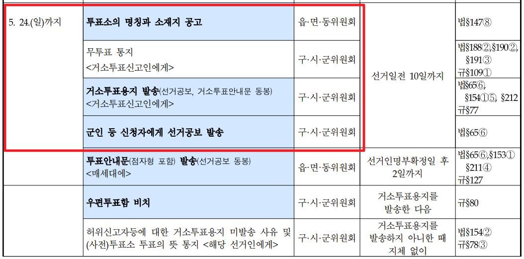 2026. 6. 3.(수) 실시 제9회 전국동시지방선거 주요사무일정/:/ 전국동시선거와 일부지역 재보궐선거의 우편투표 차이에 대해/:/ 중앙선거관리위원회: 여전히 일못하는 멍청이들 본문