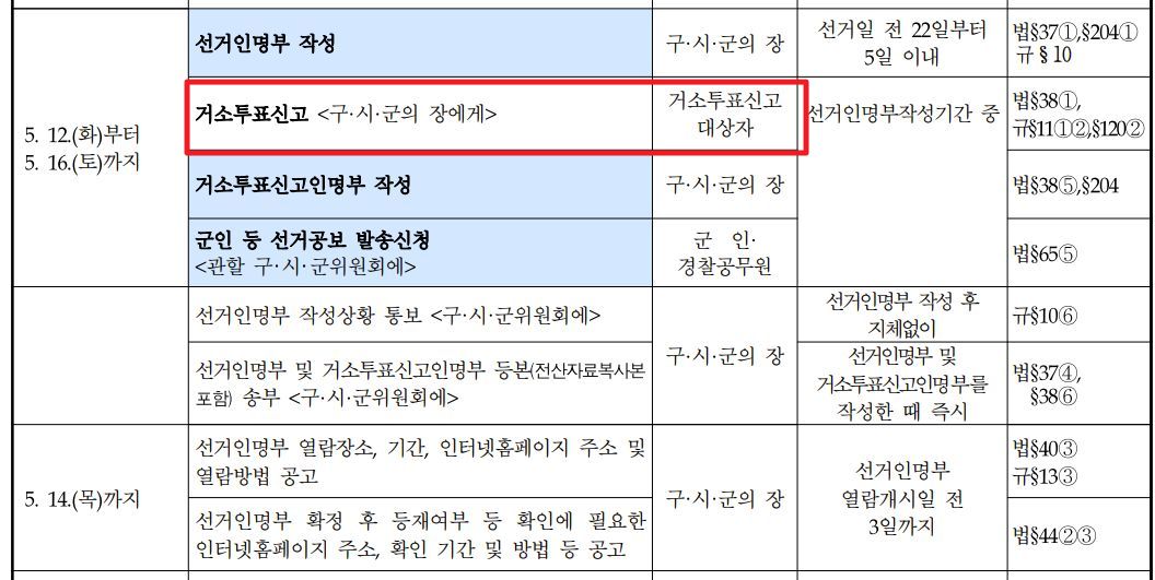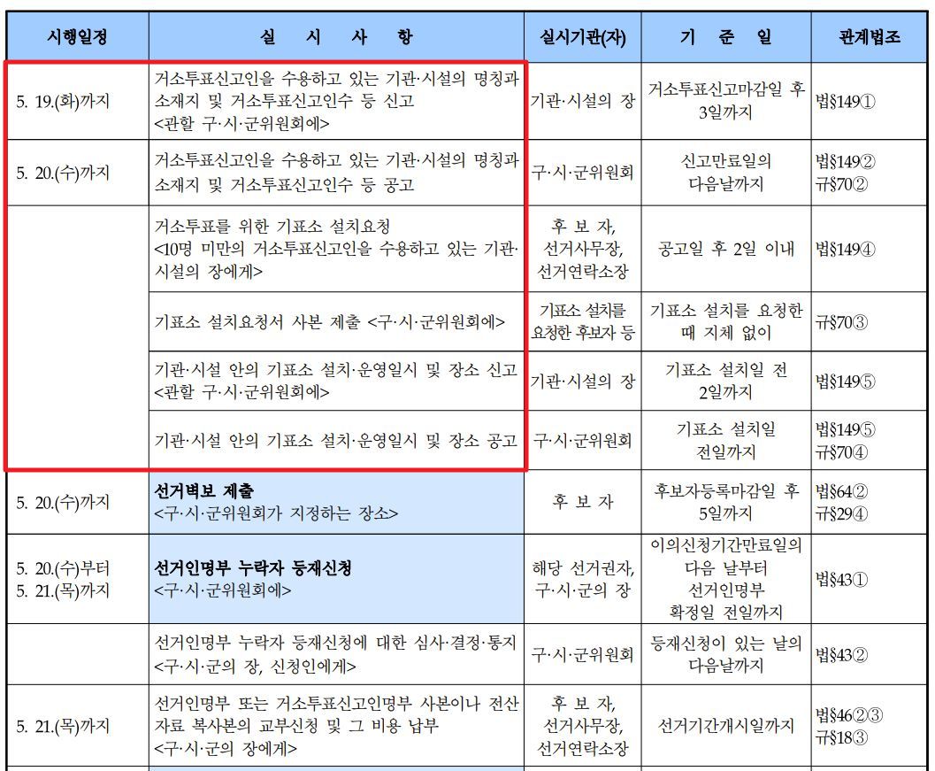 세부일정 중 거소투표관련 선거사무 /일정 일부만 발췌