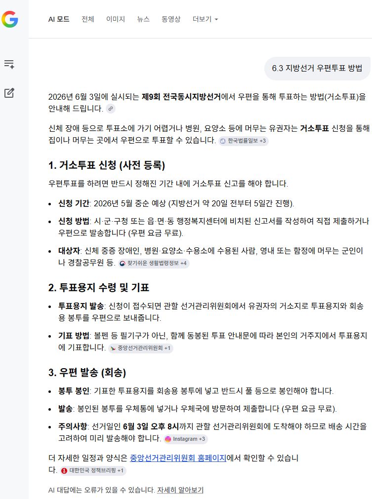 2026년 6월 3일에 실시되는 제9회 전국동시지방선거에서 우편을 통해 투표하는 방법(거소투표): 제미나이