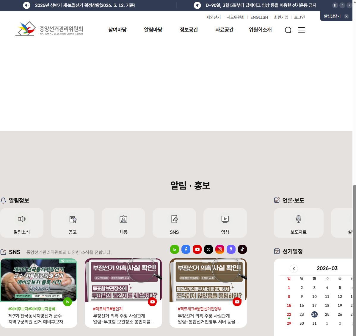이 페이지는 중앙선거관리위원회 대표 홈페이지 입니다