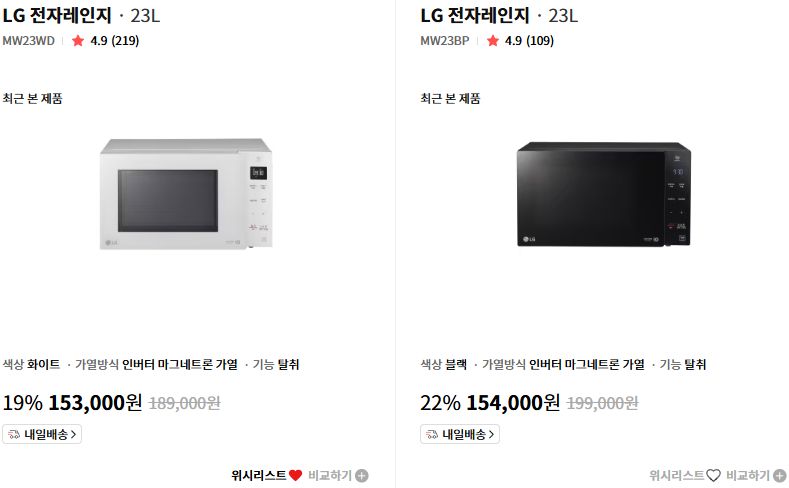 [전자레인지] LG전자 전자레인지 정리편! 어떤걸 사야할까? (MW22CD, MW22CD9, MW23ED, MW23WD, MW23GD, MW23CD,