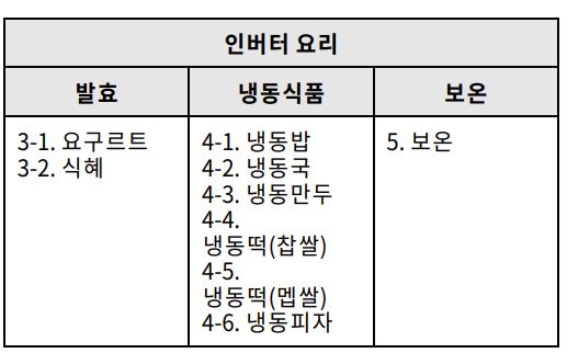 생활지혜버튼, 인버터 요리 버튼 메뉴