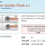 Adobe Flash의 CPU점유율을 줄여주는 프로그램. 앞서 구글 크롬용을 찾았고, 혹시나 해서 Firefox용도 찾아보았는데, 있네요. :) Firefox 구버전용으로 Flash Quality Changer 라는 것이 있었고, 지금 시험판으로 나온 것이 Low Quality Flash 입니다. 이것도 버전 0.1이며, 시험판이라 위험은 감수하고 설치하라..고. Low Quality Flash 설치하고 불여우를 재시작하면 활성화됩니다. 끄려면 애드온 화면으로 가서 옵션을 클릭. Chrome 용 익스텐션과 달리, 이것은 낮추느냐 그냥 두느냐만 가능합니다. 이제 인터넷 익스플로러(IE8)용만 나오면 되는데, 혹시나 해서 찾아보는데 아직 안 보이네요. :)