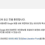 주소: https://www.google.com/takeout 로그인한 다음구글 서비스 중 데이터를 백업할 서비스를 고를 수도 있고 모든 데이터를 선택할 수도 있습니다. 이후, 막대그래프로 백업 데이터 준비 과정을 보여줍니다. 기다려도 되고, 밑에 "준비되면 g메일로 알려주기" 체크해도 됩니다. 그 다음에 다운로드 링크가 나오면 받는 모양입니다. 다운받아보지 않아서 각 서비스 데이터가 어떤 포맷으로 준비되는지는 모르겠습니다. (예전에 서비스를 닫을 때 구글노트 데이터는 html 파일 한 개로 줬습니다.) 자세한 내용은 아래 링크를 참고하세요. 잘 나와있습니다.[ 알게 된 곳 ] PS.관련글http://www.clien.net/cs2/bbs/board.php?bo_table=lecture&wr_id=165..