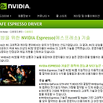 600시리즈 이상에서 적용할 수 있는 PC방용 그래픽카드 드라이버로, 60프레임을 달성하면 그 이상을 출력하지 않도록 하는 것.그만큼 전기를 절약할 수 있다고. 그 기능을 중심으로, 인터넷카페, PC방용으로 최적화한 드라이버라고 소개해놨다. http://www.nvidia.co.kr/object/icafe-espresso-kr.html