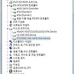 윈도의 장치관리자를 열면 이게 기본이죠. 장치관리자는 제어판에서 열어도 되고, 시작메뉴나 바탕화면에서 "내 컴퓨터(컴퓨터)" 단축아이콘을 마우스 오른버튼으로 클릭해 "속성"메뉴를 선택한 뒤 선택해도 됩니다. 보기 메뉴에서 장치(종류별) 입니다. 아래는, 보기 메뉴에서 장치(연결별) 입니다. 큰 차이는 없지만, 이를테면 이 컴퓨터에 끼운 SATA하드디스크 드라이브가 AHCI모드로 물려 있는가, 아니면 IDE 호환으로 물려 있는가를 확인할 수 있습니다. 종류별로 본 윗 그림에서 히타치 하드와 시게이트 하드는 모두 한데 몰려있지만 아래 그림에서는 히타치는 IDE 컨트롤러에, 시게이트는 SATA컨트롤러에 물려 있는 게 보이죠. (지금 쓰는 메인보드가 AHCI모드를 기본으로 하면 5번 6번 SATA포트는 IDE호..