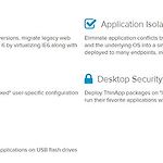 프로그램 패키지단위로 물떠먹은 자리처럼 실행하도록 만드는 것. 단, 설치 시점에 시스템을 건드리는 걸 어떻게 해준다는 것이지, 실행 시점에 시스템이나 파일을 건드리는 걸 막아주진 않습니다. 그리고 다 되진 않고, 되는 프로그램, 안 되는 프로그램이 있는 모양입니다. 관련 링크를 해둡니다.http://m.blog.naver.com/sojumonika/220545772082 https://www.vmware.com/products/thinapp.html http://blogs.vmware.com/thinapp/2008/10/how-to-make-a-t.htmlhttp://www.vmware.com/kr/support/thinapp.html